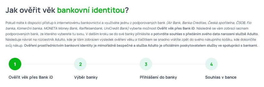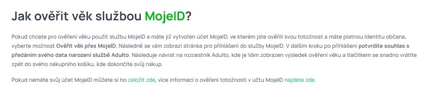Ověření věku prostřednictvím služby Adulto je bezpečné.