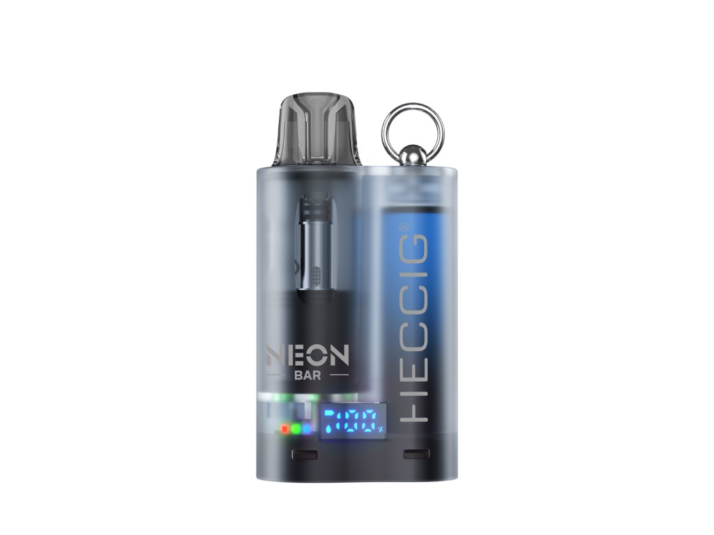 Elektronická cigareta s otevřeným POD systémem - opakovaně plnitelná. HECCIG NEON Bar přináší elegantní funkce, které posouvají vapování na novou úroveň. Okénko pro e-liquid a chytrý displej vám poskytují důležité informace. Pulsující barvy s dynamickým RGB led vás udělají středem pozornosti, zatímco kovové očko na šňůrku umožňuje mít zařízení vždy po ruce. Elegantní satinovaný obal nabízí decentní pohled na baterii uvnitř a průhledné okénko usnadňuje sledování hladiny e-liquidu – každý pod pojme 4 ml a umožňí až 5 doplnění. Displej zobrazuje stav baterie v reálném čase. Stabilní výkon poskytuje silnou páru a uspokojivá oblaka dýmu. Ať už preferujete hutnější nebo volnější potah, snadné ovládání průtoku vzduchu vám dává svobodu volby. SPECIFIKACE Kapacita baterie: 550 mAh Objem nádržky: 4ml Nabíjení: USB-C